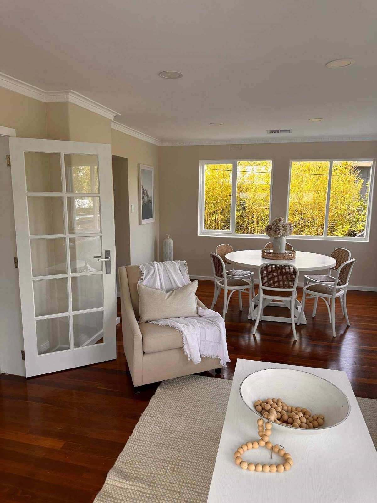 completed living and dining room after interior painting at 22 fergusson crescent, deakin